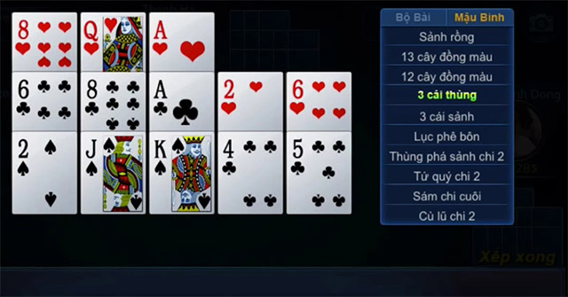 Tuy nhiên, người chơi lưu ý không xếp sảnh, thùng, cù lũ, tứ quý, thùng phá sảnh, thùng phá sảnh lớn ở chi cuối. Việc sắp xếp các lá bài không hề đơn giản, người chơi phải là người có logic và con mắt tinh tường.