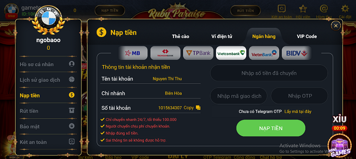 Tuy nhiên thì tôi vẫn khuyên người chơi nên sử dụng Internet Banking để có tốc độ và dịch vụ tốt nhất.