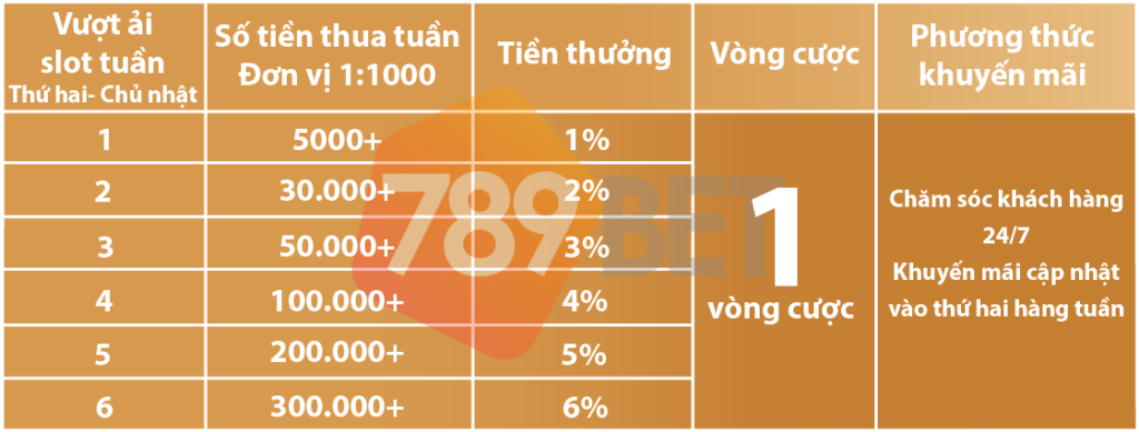 Khuyến mãi bảo hiểm áp dụng cho Game Slot. Người chơi trong tuần có lượng tiền thua tương ứng có thể liên hệ để nhận tiền bảo hiểm tuần này.