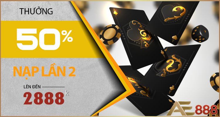 Tiếp tục đưa ra các khuyến mãi, ưu đãi hổ trợ người chơi đang tham gia cá cược tại cổng game AE888. Cổng game đưa ra khuyến mãi 50% giá trị nạp cho người chơi Nạp tiền lần thứ 2 tại nhà cái lên đến 2.888.000 VND. Để tham gia sự kiện, người chơi cần lưu ý sau: