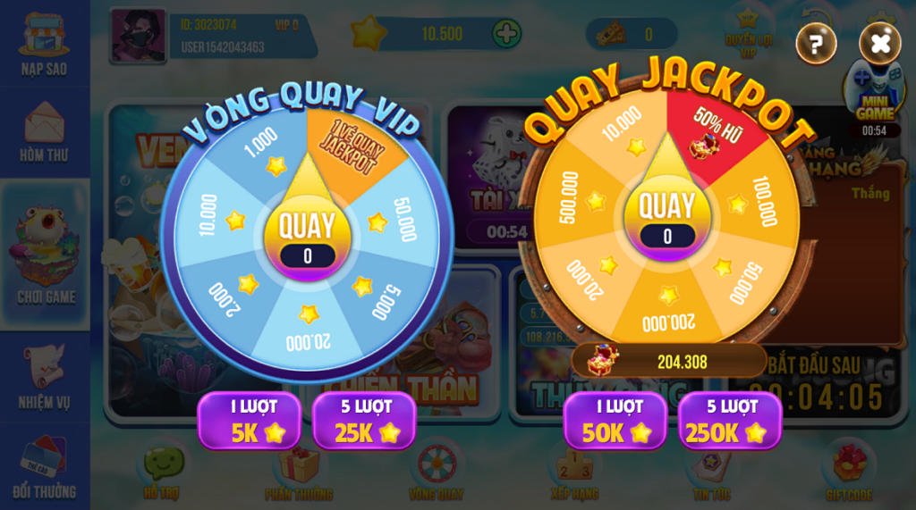 Nếu các bạn không muốn đi săn cá như một ngư dân nữa, thì hãy đến với Vòng Quay VIP hoặc Quay JACKPOT để có cơ hội tham gia trở thành triệu phú tại cổng game Bắn Cá 5 Sao nha.