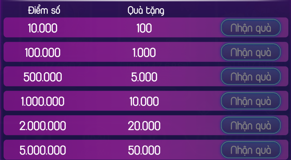 - Chơi game càng nhiều thì tiến trình nhận thưởng càng nhanh, không thể thắng hay thua