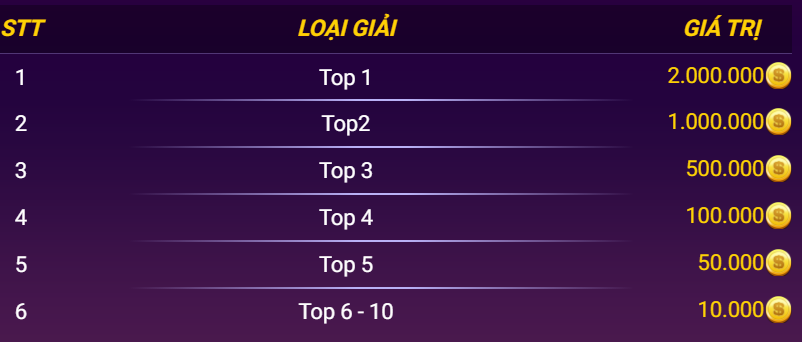 Giải thưởng cho sự kiện bài đẹp như sau: