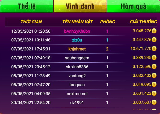- Phiên chơi hợp lệ là phiên chơi có ít nhất 5 lượt chơi và lượt chơi cuối cùng là lượt thắng