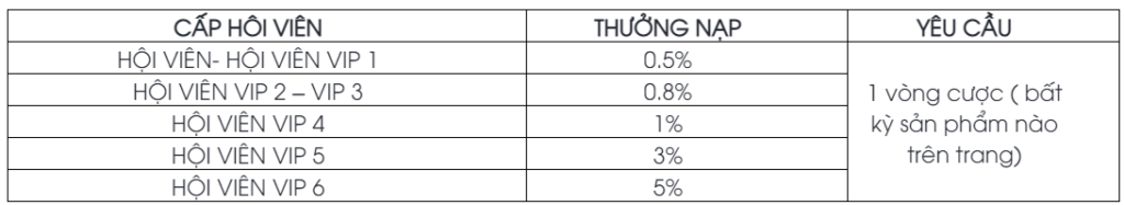 Tặng đến 5% tiền nạp qua chuyển khoản nhanh Cấp Độ Càng Cao – Ưu Đãi Càng Lớn, nhận ngay không cần đăng ký khuyến mãi.