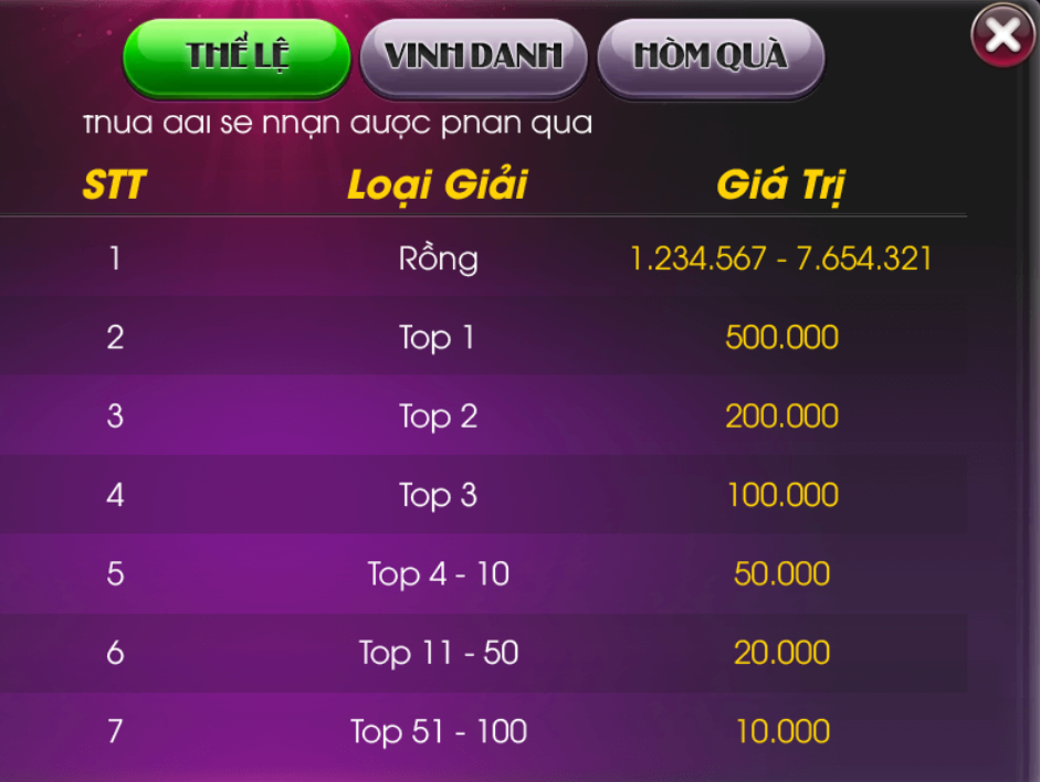 - Những người ở Top 1 sẽ nhận được 500.000 và Top 51-100 sẽ nhận được 10.000 nha các bạn