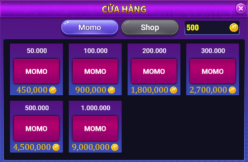 - Nhấn vào thanh toán 9.000.000 vàng = 1.000.000 Tiền Thẻ Cào