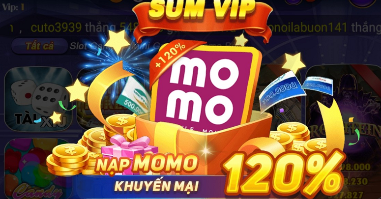 Người chơi khi thực hiện nạp tiền qua giao dịch ví điện tử Momo sẽ nhận được khuyến mãi 20% tổng giá trị nạp tại cổng game bài đổi thưởng Sumvip Club.