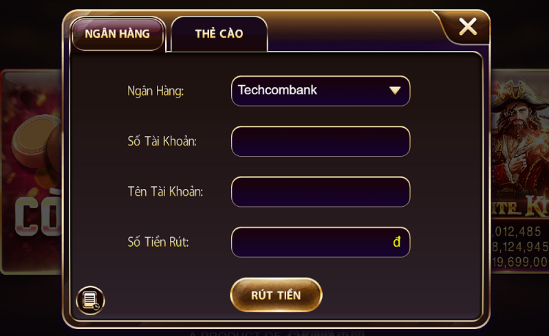 Số tiền vàng người chơi thắng được trong những ván cá cược sẽ quy đổi sang Thẻ Cào hoặc rút tiền về thẻ Ngân Hàng cá nhân của mỗi tài khoản nha. Để thực hiện rút thẻ cào tại cổng game V8 Club người chơi thực hiện một số bước sau đây: