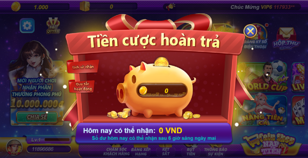 Người chơi tham gia cá cược càng nhiều sẽ có cơ hội nhận tiền thưởng hoàn trả cược càng lớn tại cổng game V99 Club nha.