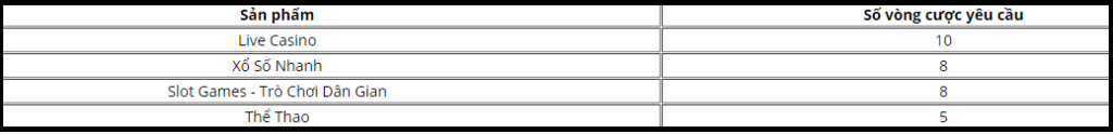Tổng tiền cược yêu cầu: (300.000 + 360.000) x 28 vòng cược = 18.480.000 VND