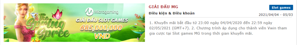 Bên cạnh giải đấu YGG, nhà cái VWin tổ chức thêm giải đấu MG tổng giá trị lên đến 685 Triệu VND.