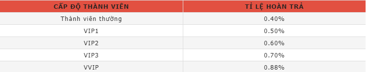 Hệ thống sẽ hoàn trả dựa trên tổng doanh thu cược của người chơi trong vòng tuần ( 11h00 thứ 6 tuần này đến 11h00 thứ 6 tuần sau). Cơ hội được hoàn trả lên đến 1% tại nhà cái VWin.