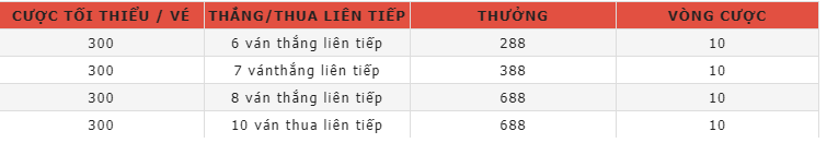 Cứ mỗi 137 VND doanh thu tích lũy tại các trò chơi quy định, người chơi sẽ nhận được 1 phiếu rút thăm. Mỗi tuần sẽ có 325 giải thưởng tiền mặt và sẽ theo giai đoạn phân chia của nhà cái