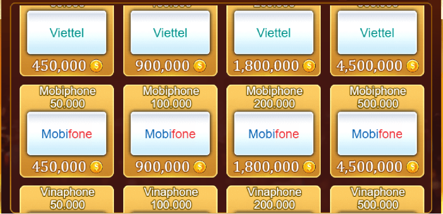 450.000 Xu Vàng tương đương với thẻ cào giá trị 50.000 VND.