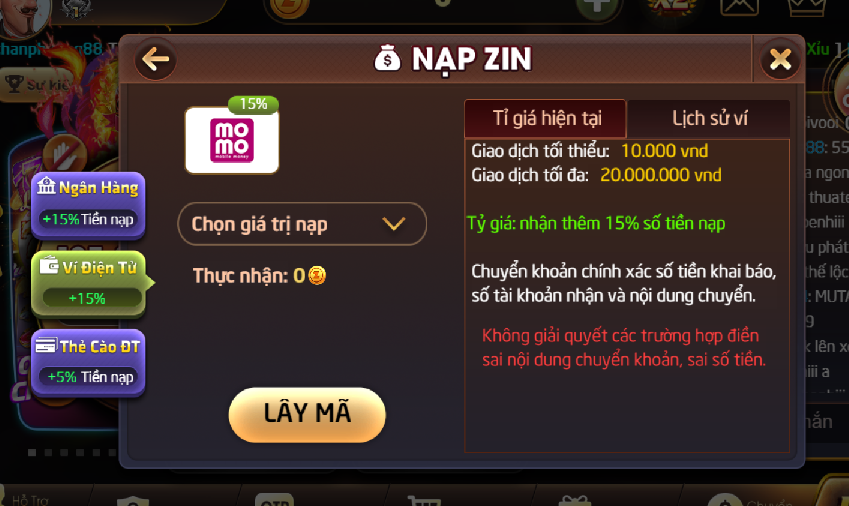 Lưu Ý khi nạp tiền bằng hình thức qua Ngân Hàng hoặc Momo