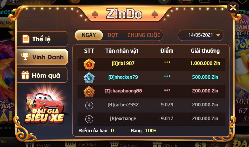 - Bảng điểm trên Bảng Xếp Hạng của người chơi là tổng điểm VIP khách hàng có được ở tất cả các game trong 1 ngày sự kiện