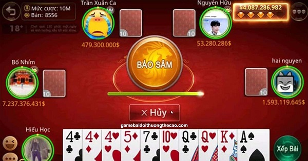 Khi người chơi đã có đủ các lá bài trên tay thì tiến hành sắp xếp bài. Sau đó người chơi sẽ có khoảng 20 giây để quyết định có nên báo sâm hay không. Nếu không ai có thì ván chơi sẽ bắt đầu. Khi người đầu tiên đánh thì người chơi thứ hai phải đánh quân bài có giá trị lớn hơn. Nếu là đôi thì chặn đôi lớn hơn, là sảnh thì chặn sảnh lớn hơn. Lưu ý đối với sảnh thì phải căn cứ vào sảnh trước đó.