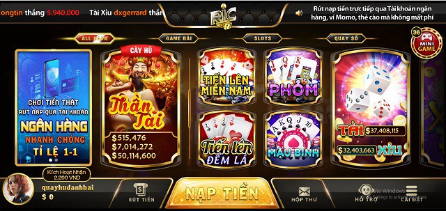 Cổng game đánh bài đổi thưởng online ric.win hứa hẹn sẽ đem đến những giây phút thư giãn, thoải mái cho người chơi. Để có thể tham gia thì bạn truy cập vào cổng game. Rất nhiều điều hấp dẫn chờ người chơi trải nghiệm. Bạn sẽ được hỗ trợ nhiệt tình, chu đáo khi không biết xử lý bất kì tình huống nào.